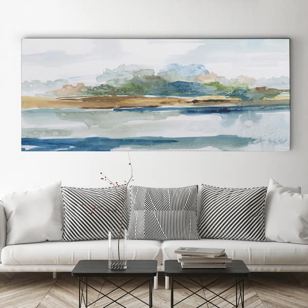 Bring a calming, relaxing vibe to your space with this premium canvas, which is gallery-wrapped for a seamless, art gallery-style look. Featuring an impressionistic seascape in chilled-out shades of blue, grey, green, and brown, this easy-to-match canvas is lightweight and easy to hang for your convenience.