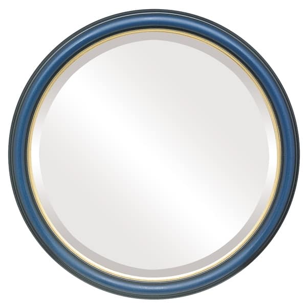 Hamilton Framed Round Mirror in Royal Blue with Gold Lip
