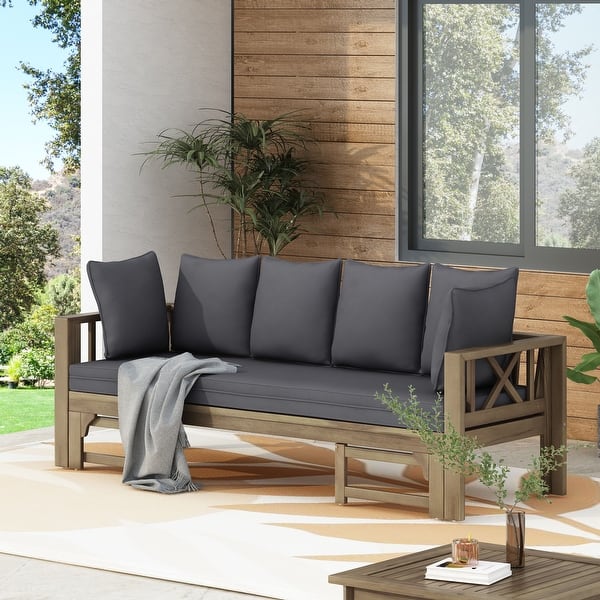 Long Beach Outdoor Extendable Acacia Wood Daybed Sofa by Christopher Knight Home - Gray + Dark Gray
