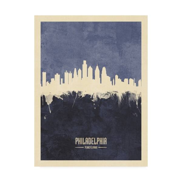 Michael Tompsett 'Philadelphia Pennsylvania Skyline Navy' Canvas Art