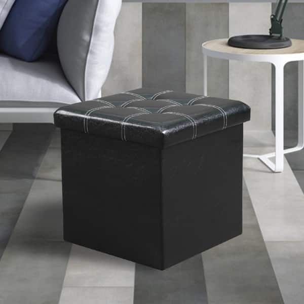 Porch & Den Forestglenn Upholstered Accent Ottoman/ Bench - Black - 15" W x 15" D x 14.8" H
