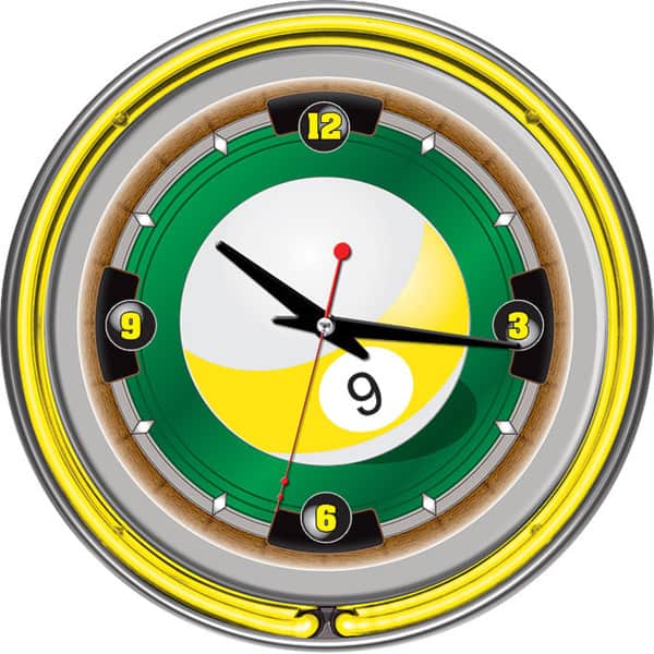 Rack'em 9 Ball 14-inch Neon Wall Clock