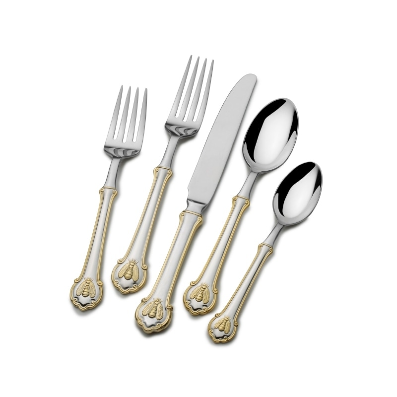 Wallace Gold Accent Napoleon Bee 18.10 45-Piece Flatware Set
