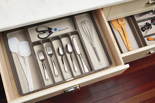 As for the ubiquitous junk drawer, Godding advises getting rid of it altogether (she is a professional organizer, after all). If you must have one, she suggests placing it at the outermost edge of the kitchen.