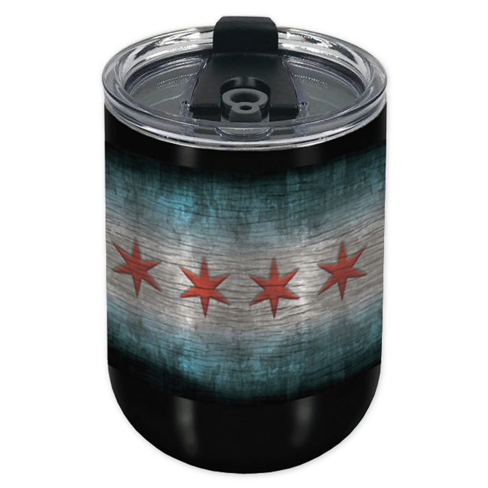 Keep your drink hot or cold in this City of Chicago Flag Insulated Tumbler from Indigo Falls. This vacuum-insulated stainless steel tumbler features textured decoration and a no-spill lid. Keeps beverages hot up to 8 hours and cold up to 24 hours.
