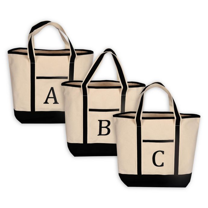 - Monogram Embroidered Block Letter Large Canvas Tote Bag