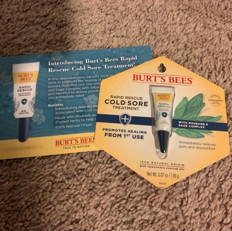 I love burt's bees products and when I saw the cold sore treatment I got very excited. Unfortunately, my cold sore kept growing and hurting even though I constantly applied this product. I hope it helps others with less stubborn cold sores.