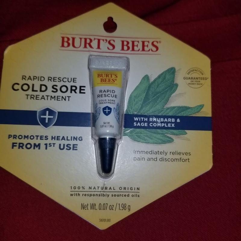 I have never written a review , but feel I have to on this one . I had a huge cold sore that swelled my whole upper lip . It was so bad I could barely open my mouth to drink or eat . I used abreva and releev which helped keep it at bay some , but no relief at all for my throbbing pain . Finally asked my husband to please go find something for the pain and swelling and we did reviews . Saw some good stuff about Burts Bees rapid rescue and figured it’s worth a trip out to try it . Boy am I glad he did !! As soon as I opened the package and applied I felt relief I don’t know if it will do anything else yet , but the pain relief was worth it alone . I will try to write another review after 24 hours of use . Thank you for helping me get relief !! Wish I had it a day ago .