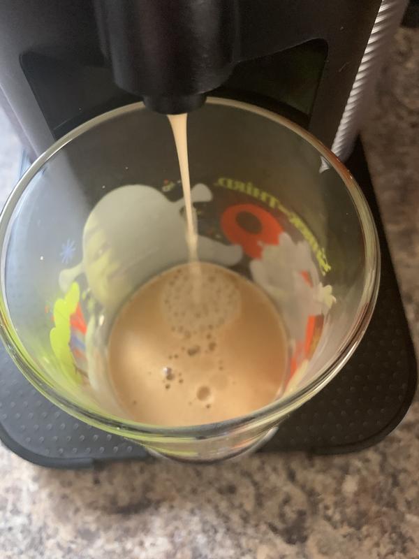 This Nespresso squeezes every bit of the pod contents. It literally froths the espresso.